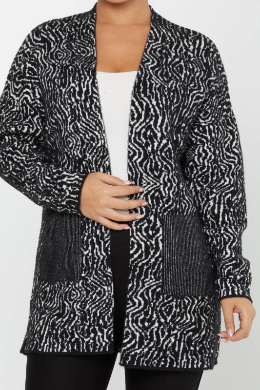 Kardigan Angora Dwukolorowy Kieszenie Czarny - 30121 | KAZEE (zestaw 3 sztuk M-L-XL)
