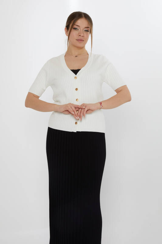 Kardigan dzianinowy z krótkim rękawem, zapinany na guziki, ecru - 30701 | KAZEE (zestaw 3 sztuk M-L-XL)