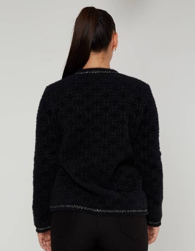 كارديجان أنجورا بأزرار وتفاصيل جيوب باللون الأسود - 30920 | كازي (مجموعة من 4 مقاسات M-L-XL-2XL)