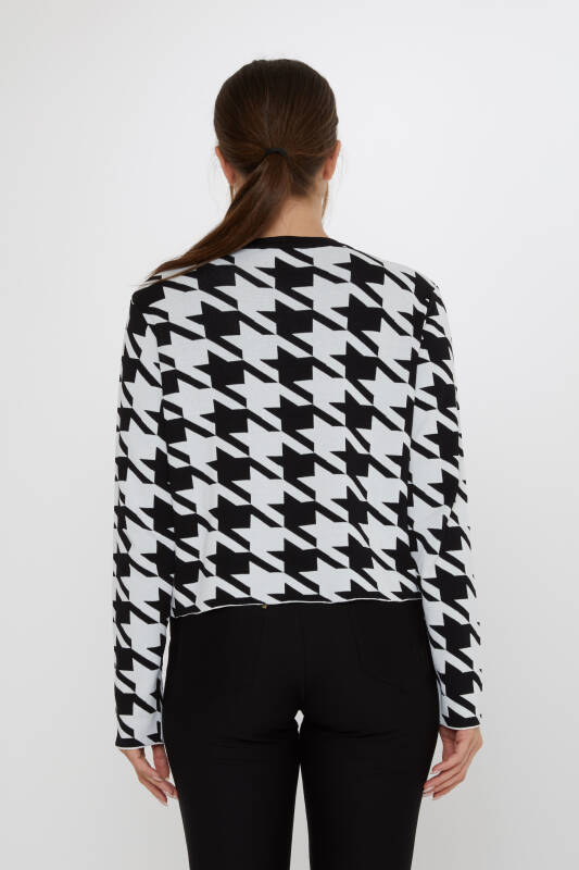 كارديجان محبوك بنقشة مربعات صغيرة، بأكمام طويلة وأزرار، أسود - 31906 | كازي (طقم من قطعتين، مقاس M-L)