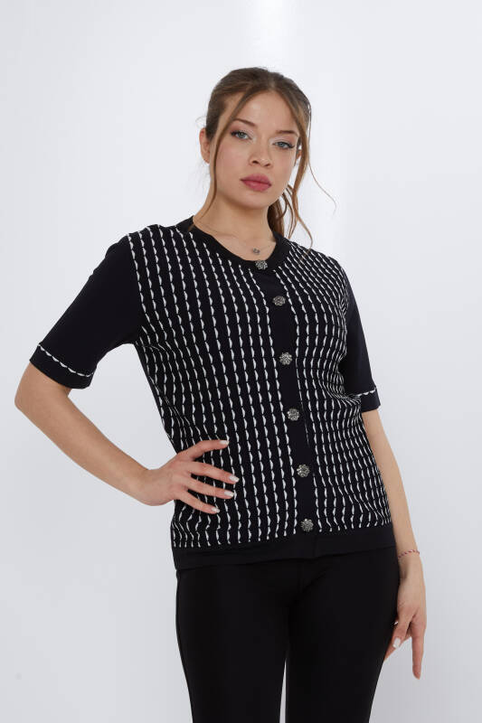 كارديجان محبوك بتفاصيل أزرار باللون الأسود - 31800 | كازي (مجموعة من 3 مقاسات S-M-L)