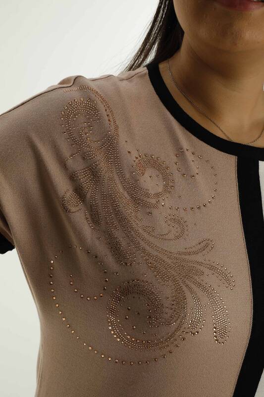 Kazee Damen-Strickwaren mit Rundhalsausschnitt und Steindetails im Großhandel – Puder| 31049