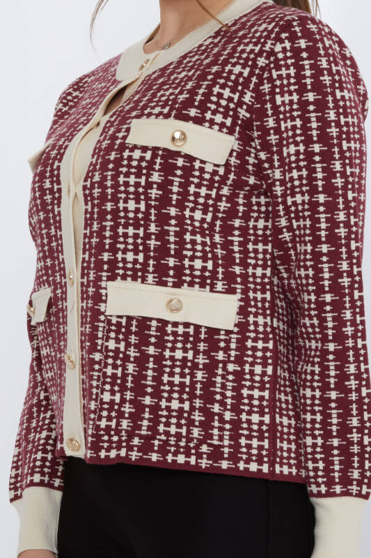 Knitted Cardigan Pocket Detail Buttoned Burgundy - 31824 | KAZEE (Set of 3 M-L-XL)