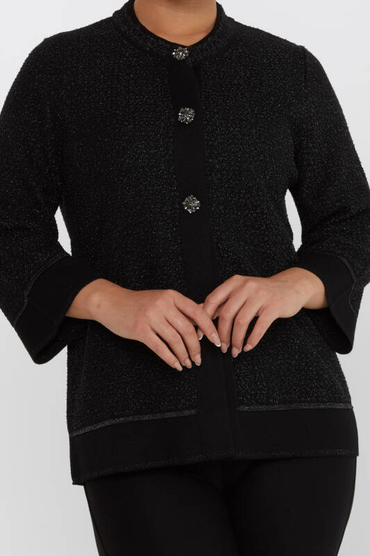 Knitted Cardigan Stone Button Detail Black - 30075 | KAZEE (Set of 3 L-XL-2XL)