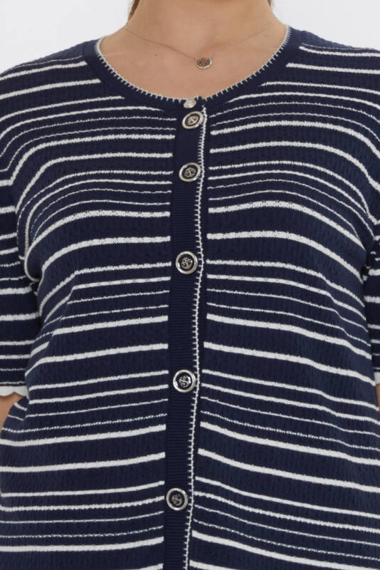 Knitted Cardigan, Striped Pattern, Buttoned, Short Sleeves, Navy Blue - 31784 | KAZEE (3-Piece Set S-M-L)