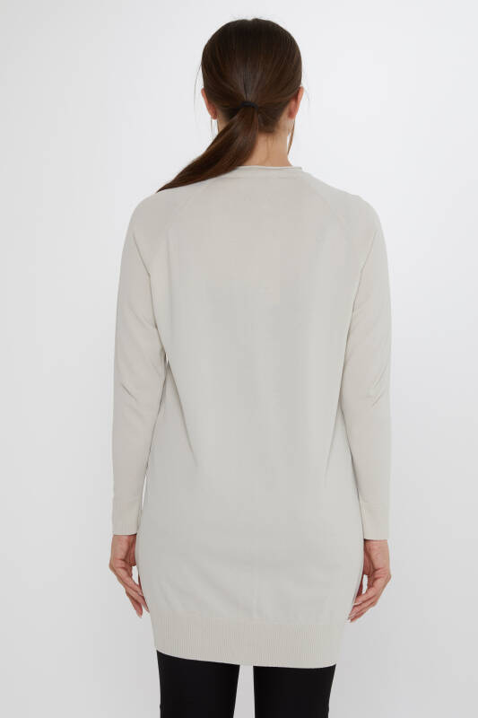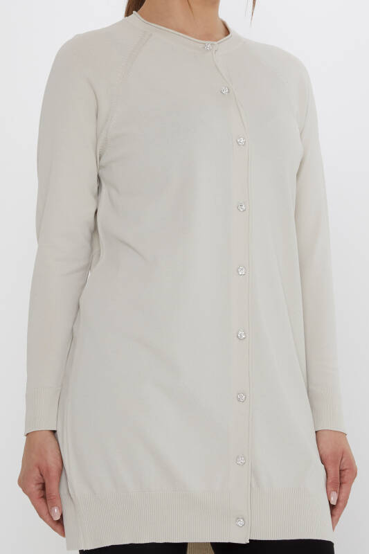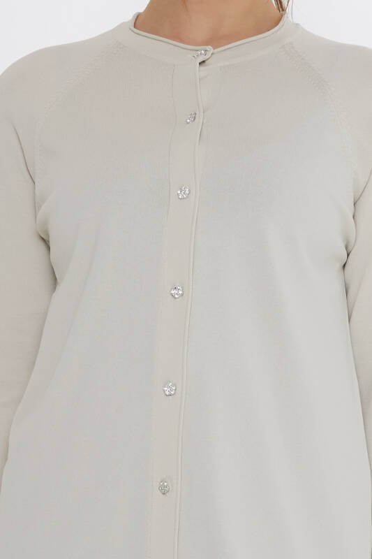 Knitted Cardigan with Rhinestone Buttons, Long Sleeves, Light Beige - 31846 | KAZEE (Set of 2 L-XL)