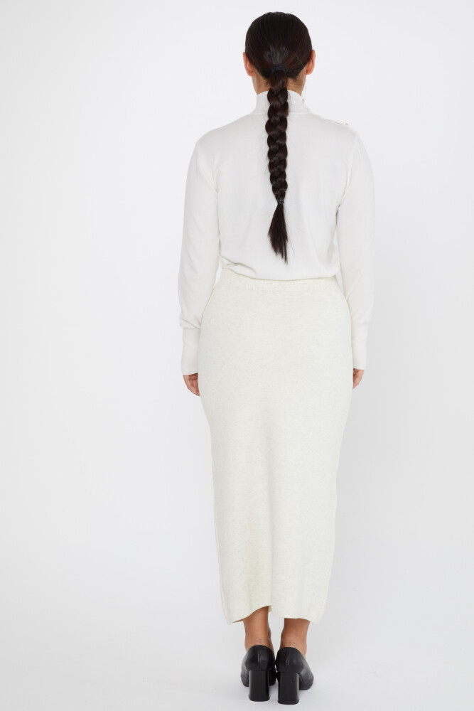 Knitted Skirt Stone Embroidered Long Elastic Ecru - 31031 | KAZEE (Set of 4 M-L-XL-2XL)