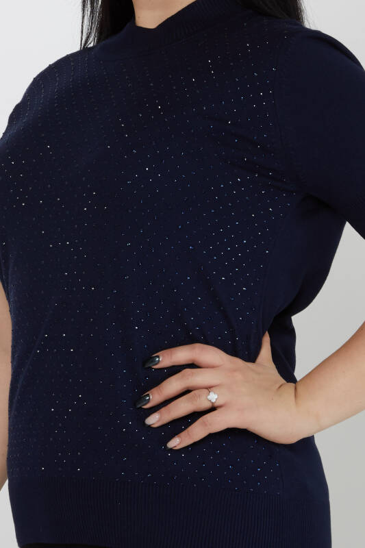 Knitted Sweater American Model Stone Embroidered Navy Blue - 31864 | KAZEE (Set of 4 L-XL-2XL-3XL)