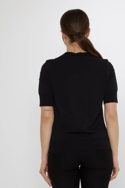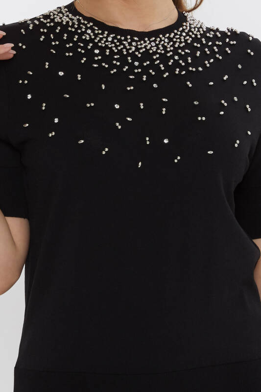 Beaded Knit Sweater, Short Sleeves, Black - 31805 | KAZEE (3-Piece Set S-M-L)