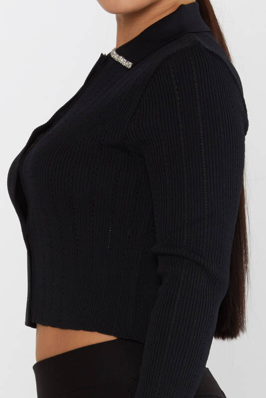 Knitted Sweater Collar Stone Embroidered Long Sleeve Black - 31301 | KAZEE (Set of 3 S-M-L)