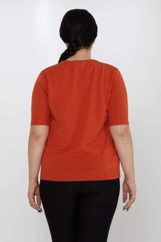 Knitted Sweater Glitter Detailed Short Sleeve Orange - 31714 | KAZEE (Set of 3 XL-2XL-3XL)