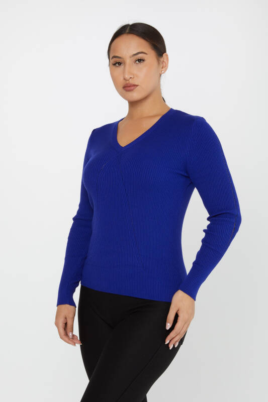 Knitted Sweater Long Sleeve V Neck Saxe - 16240 | KAZEE (Set of 3 S-M-L)