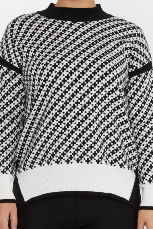 Knitted Sweater Patterned Long Sleeve Black-Ecru - 30953 | KAZEE (Set of 3 S-M-L)