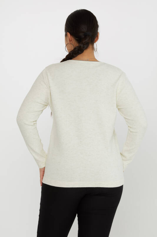 Knitted Sweater Pearl Embroidered Floral Embroidery Ecru - 31719 | KAZEE (Set of 3 XL-2XL-3XL)
