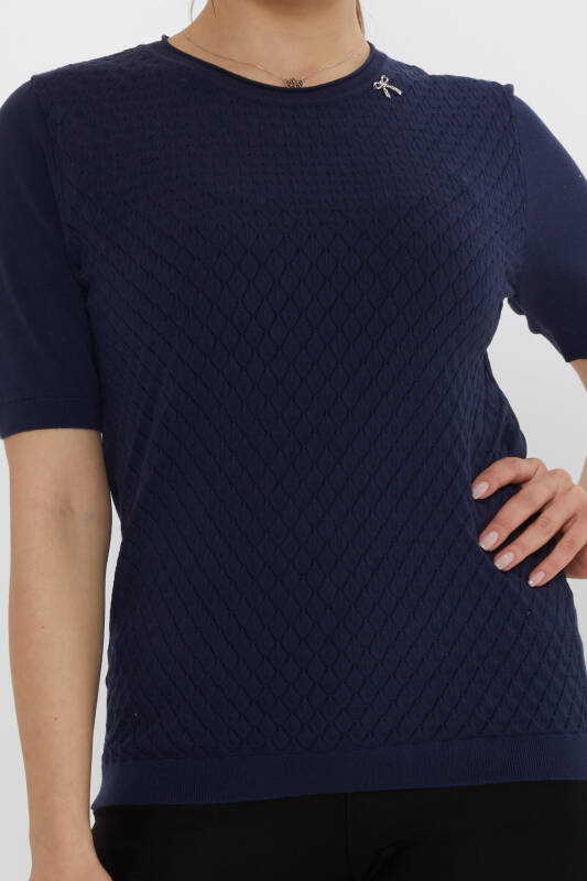 Knitted Sweater Ribbon Brooch Short Sleeve Navy Blue - 31815 | KAZEE (Set of 3 L-XL-2XL)