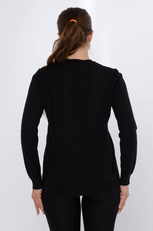 Knitted Sweater Rose Embroidered Stone Embroidered Black - 31377 | KAZEE (Set of 3 L-XL-2XL)