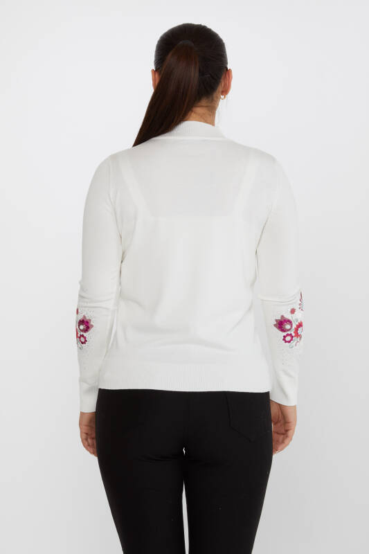 Knitted Sweater Sleeves Floral Embroidery Stand Collar Ecru - 31269 | KAZEE (Set of 4 M-L-XL-2XL)