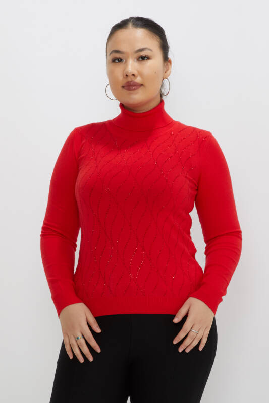 Knitted Sweater Stone Embroidered Turtleneck Red - 31151 | KAZEE (Set of 3 M-L-XL)