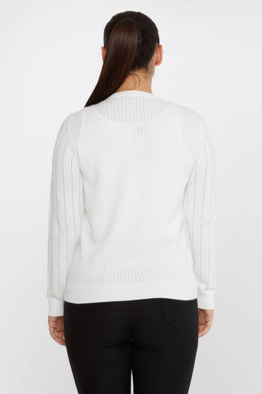 Knitted Sweater Strip Stone Embroidered Long Sleeve Ecru - 31110 | KAZEE (Set of 3 M-L-XL)