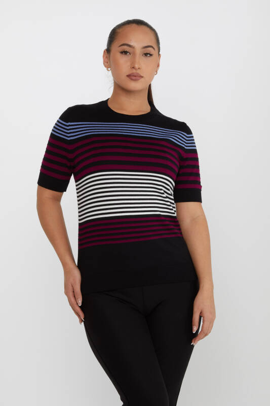 Knitted Sweater Striped Short Sleeve Navy Blue - 31273 | KAZEE (Set of 3 S-M-L)
