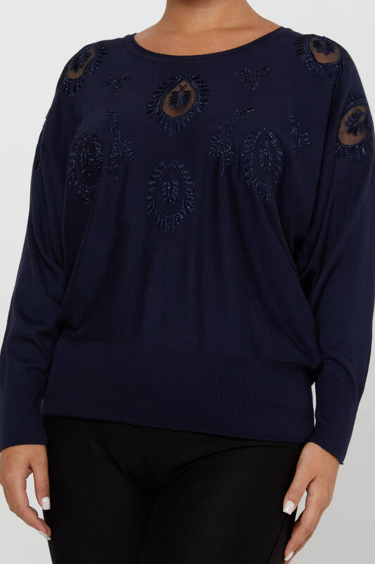 Knitted Sweater Tulle Long Sleeve Navy Blue - 30902 | KAZEE (Set of 4 L-XL-2XL-3XL)