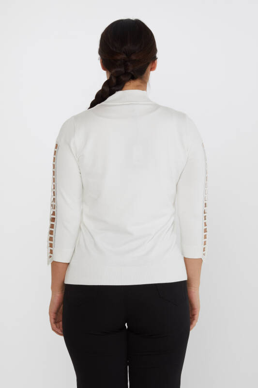 Knitted Sweater Window Sleeve Stone Embroidered Ecru - 31245 | KAZEE (Set of 3 M-L-XL)