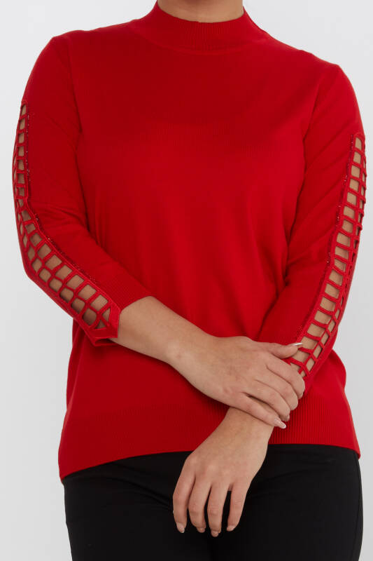 Knitted Sweater Window Sleeve Stone Embroidered Red - 31245 | KAZEE (Set of 3 M-L-XL)