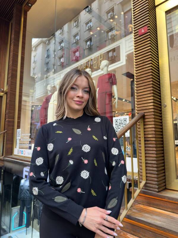 Knitted Sweater with Floral Embroidery, Black - 32166 | KAZEE (3-Piece Set L-XL-2XL)