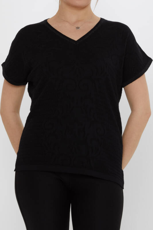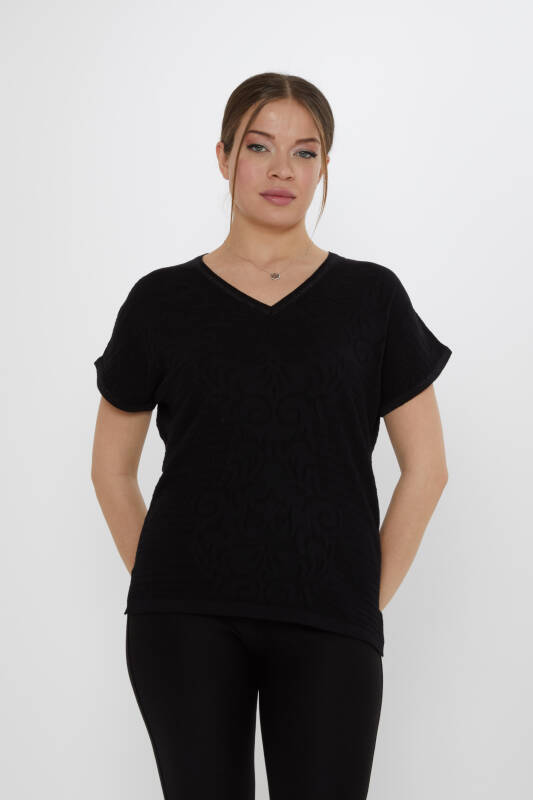 Knit Sweater with Slit Detail, Glittery Short Sleeves, Black - 31249 | KAZEE (3-Piece Set L-XL-2XL)