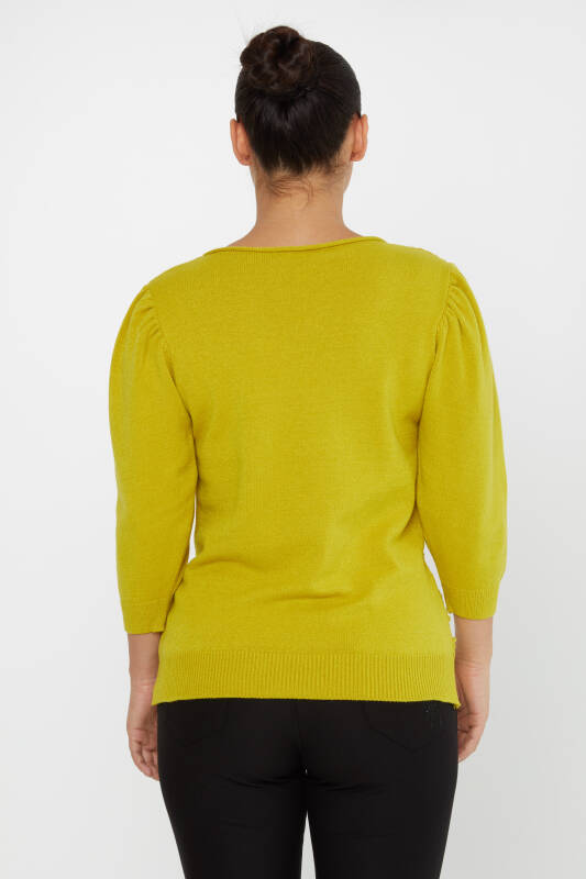 Knitted Sweater Balloon Sleeve Self-Patterned Mustard - 30340 | KAZEE (Set of 4 S-M-L-XL)