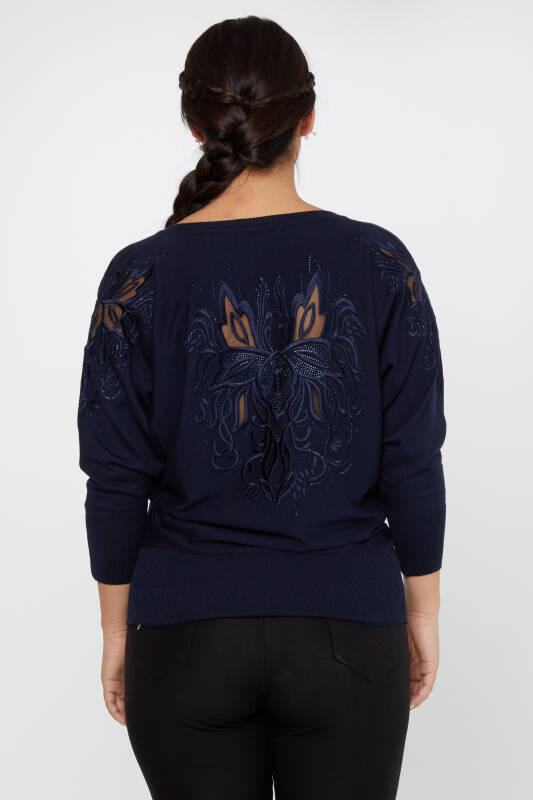 Knitted Sweater Embroidered Stone Patterned Navy Blue - 30924 | KAZEE (Set of 4 M-L-XL-2XL)