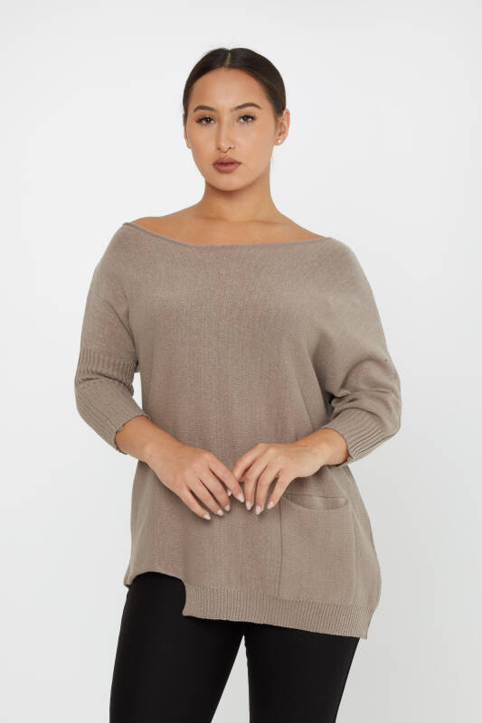 Knitted Sweater Shoulder Decollete Pocketed Mink - 30237 | KAZEE (Set of 3 M-L-XL)