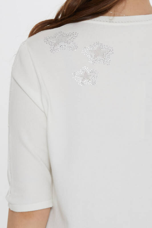 Knit Sweater with Star Embroidery and Stone Embellished V-Neck, Ecru - 31779 | KAZEE (3-Piece Set M-L-XL)