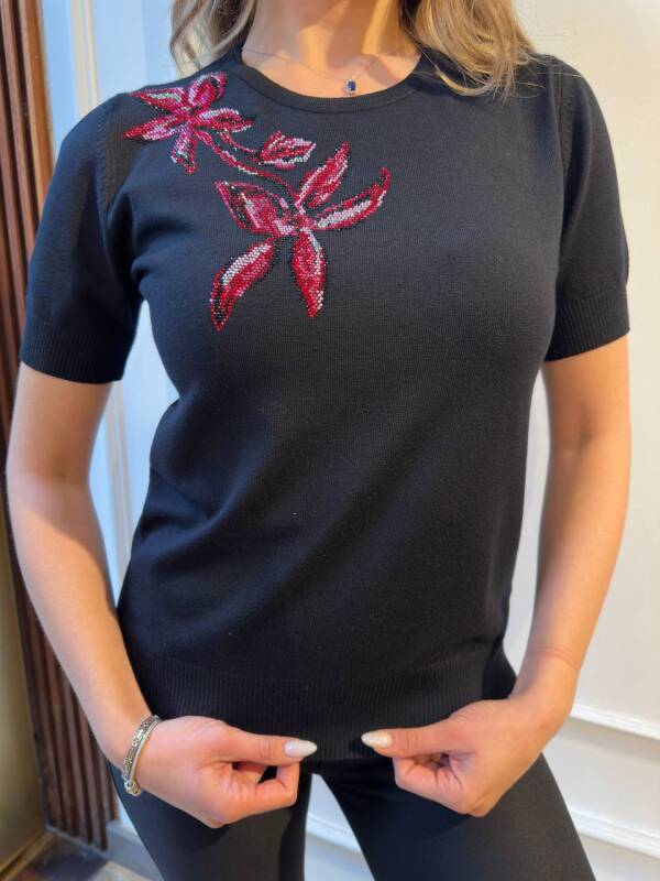 Knitted Sweater with Stone Embellishments, Crew Neck, Black - 31051 | KAZEE (3-Piece Set S-M-L)