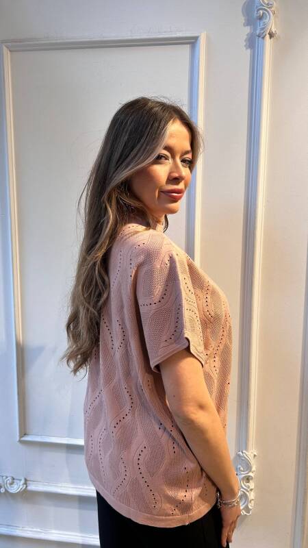 Knit Sweater with Stone Embellishments, Short Sleeves, Powder Pink - 31920 | KAZEE (3-Piece Set L-XL-2XL)