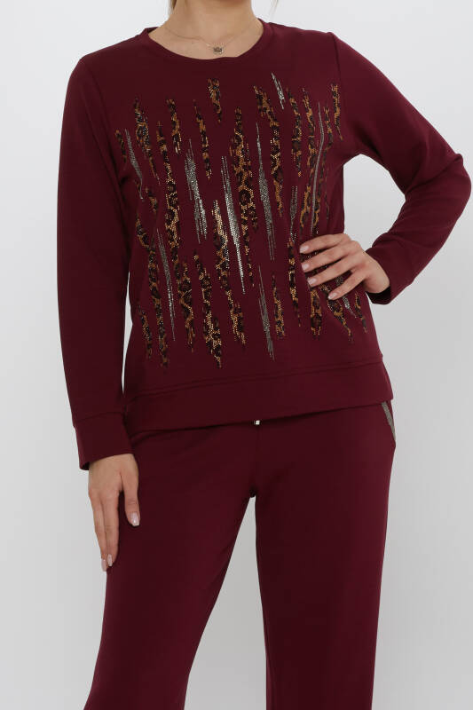 Спортивный костюм с карманом, вышитый леопардовым камнем, бордово-красный - 17886 | KAZEE (Набор из 3 шт. M-L-XL)