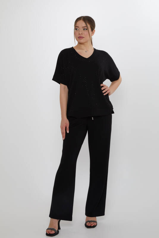 Спортивный костюм с коротким рукавом и вышивкой из камня, черный - 17867 | KAZEE (Набор из 3 шт. L-XL-2XL)
