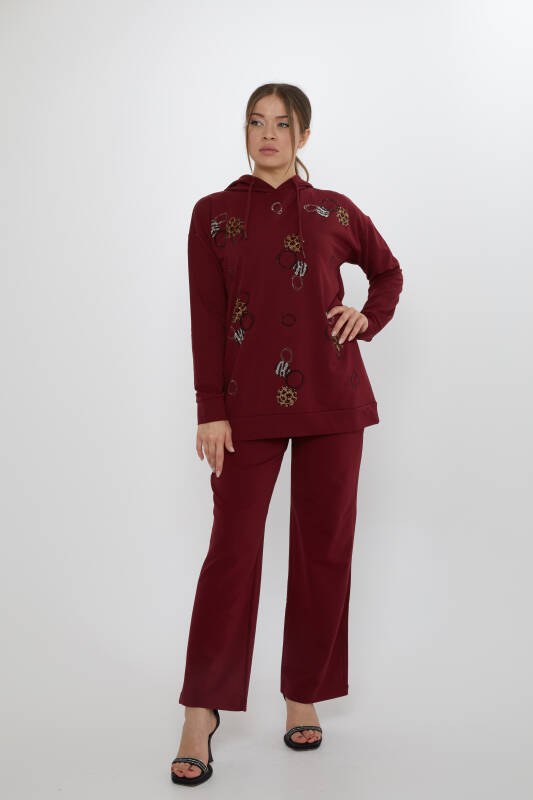 Komplet dresowy z kapturem i wzorem w kamieniu, w kolorze bordowo-czerwonym - 17898 | KAZEE (zestaw 3 sztuk M-L-XL)