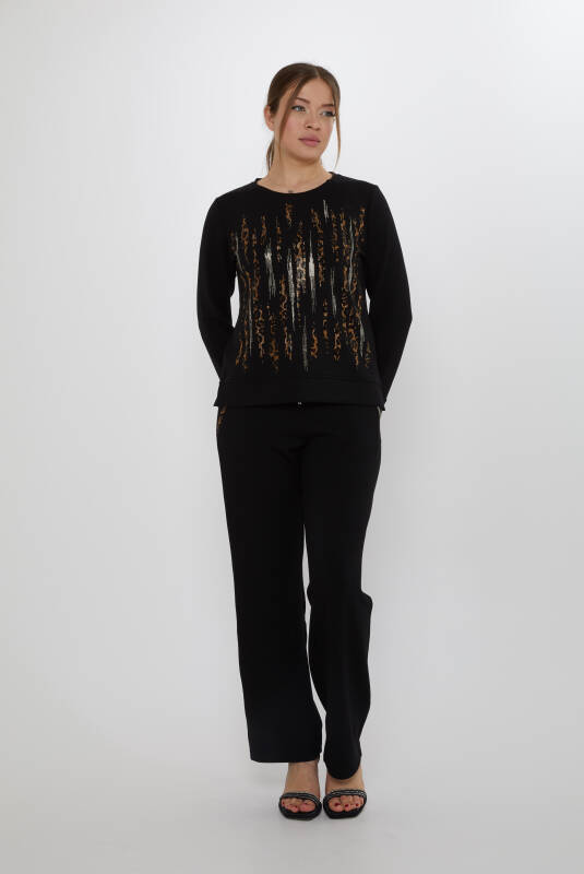 Komplet dresowy z kieszeniami, haftowany wzór panterki w kolorze czarnym - 17886 | KAZEE (zestaw 3 sztuk M-L-XL)