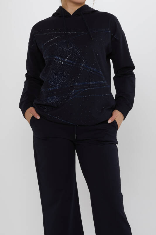 Komplet dresowy z kieszenią i kapturem w kolorze granatowym - 17900 | KAZEE (zestaw 3 sztuk M-L-XL)