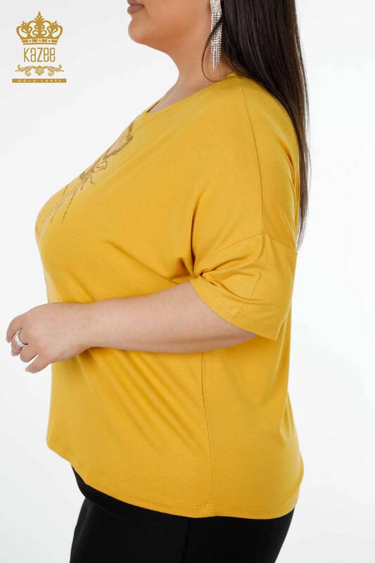 بلوزة نسائية - بنمط مورد - مطرزة بالحجر ومطرزة بالزعفران - 78908 | كازي