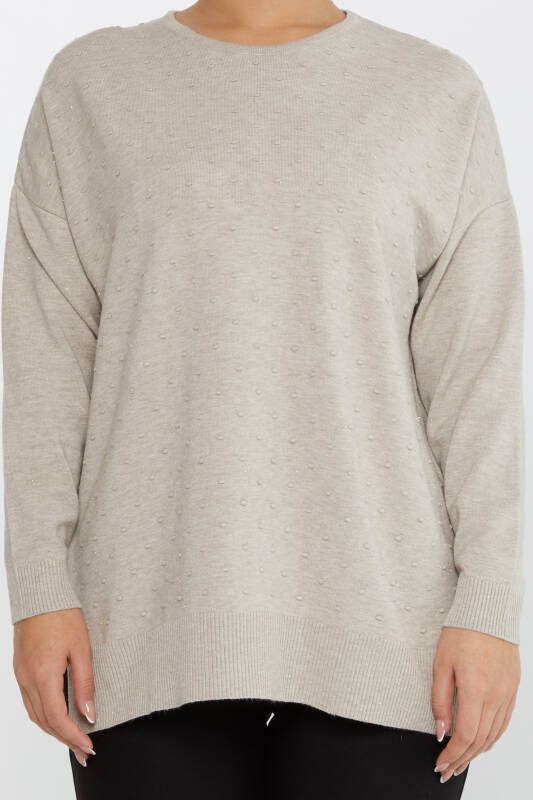 Maglione in Maglieria con Dettaglio Spacco, Visone con motivi personalizzati - 31632 | KAZEE (Set di 3 XL-2XL-3XL)