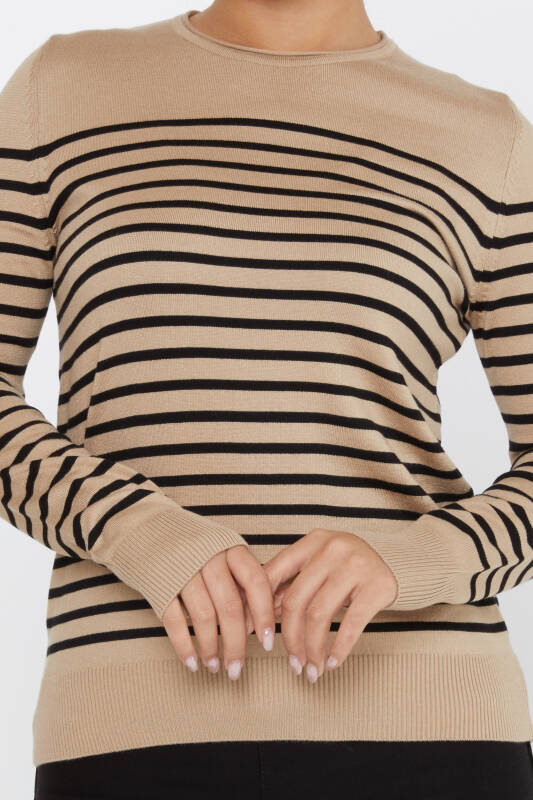 Maglieria Maglione A Righe Bicolore Manica Lunga Beige - 30898 | KAZEE (Set da 4 M-L-XL-2XL)