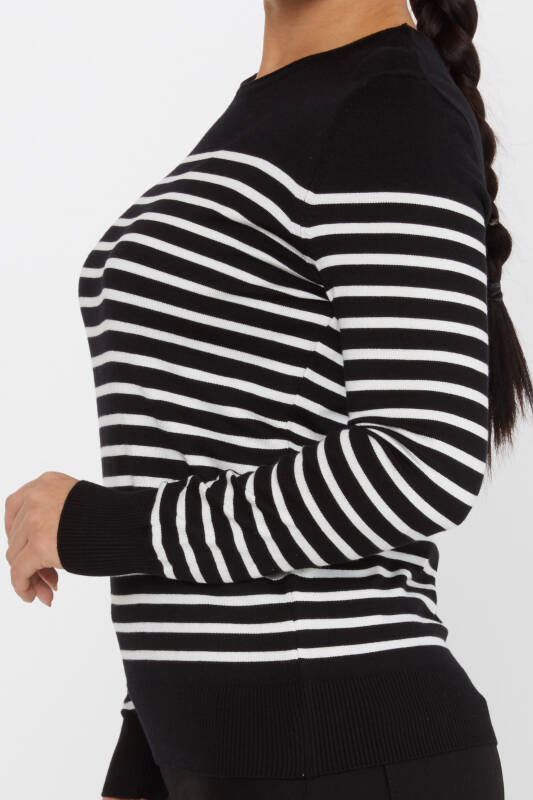 Maglieria Maglione A Righe Bicolore Manica Lunga Nero - 30898 | KAZEE (Set da 4 M-L-XL-2XL)