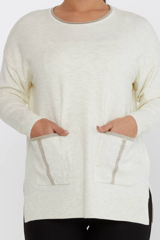 Maglieria Maglione Tasca dettagliata Stoned Glitter Ecru - 31390 | KAZEE (Set di 3 XL-2XL-3XL)
