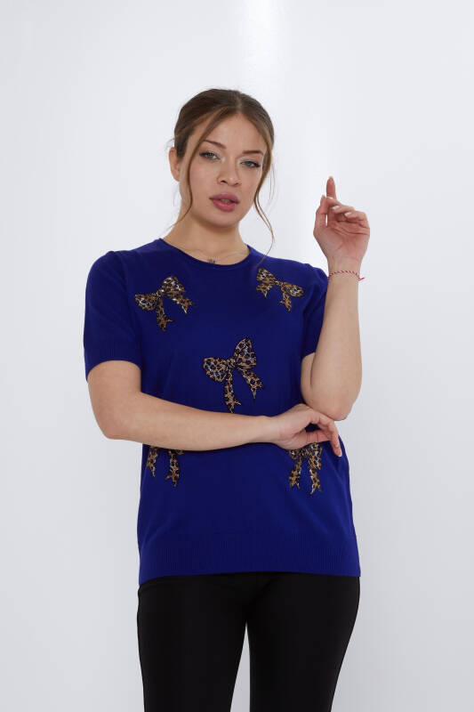 Maglione in maglia con fiocco in pietra ricamato a manica corta Saxe - 31577 | KAZEE (Set di 3 XL-2XL-3XL)