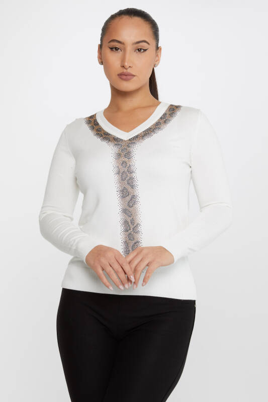 Maglieria Maglione Leopardato Ricamato Pietra Ecru - 30749 | KAZEE (Set da 4 M-L-XL-2XL)