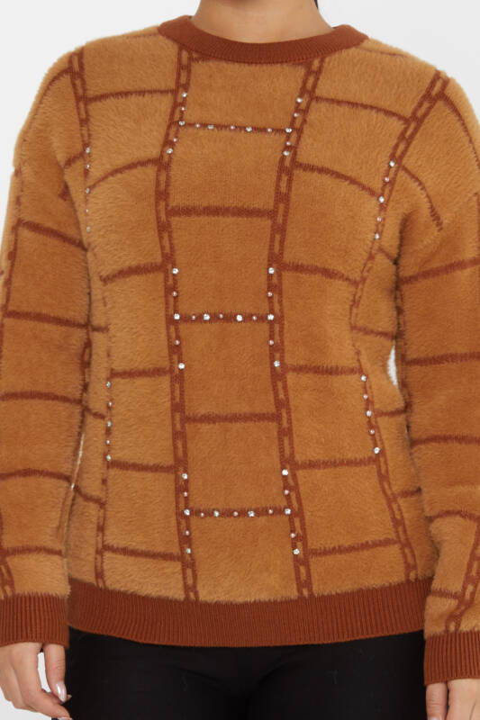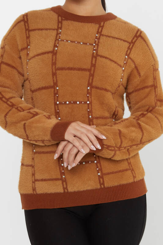 Maglione Angora Pietra Ricamata Girocollo Marrone - 30209 | KAZEE (Set di 3 S-M-L)