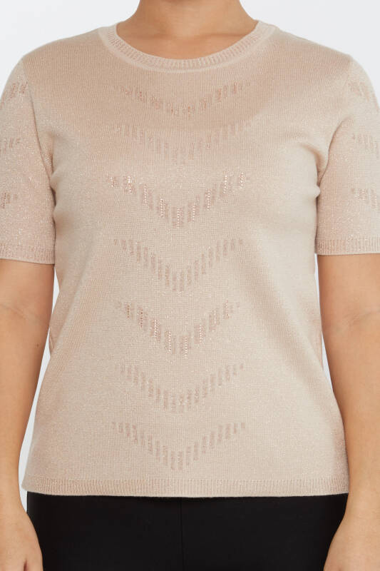 Maglione in maglia a maniche corte con dettagli glitterati in polvere - 31608 | KAZEE (Set di 3 M-L-XL)