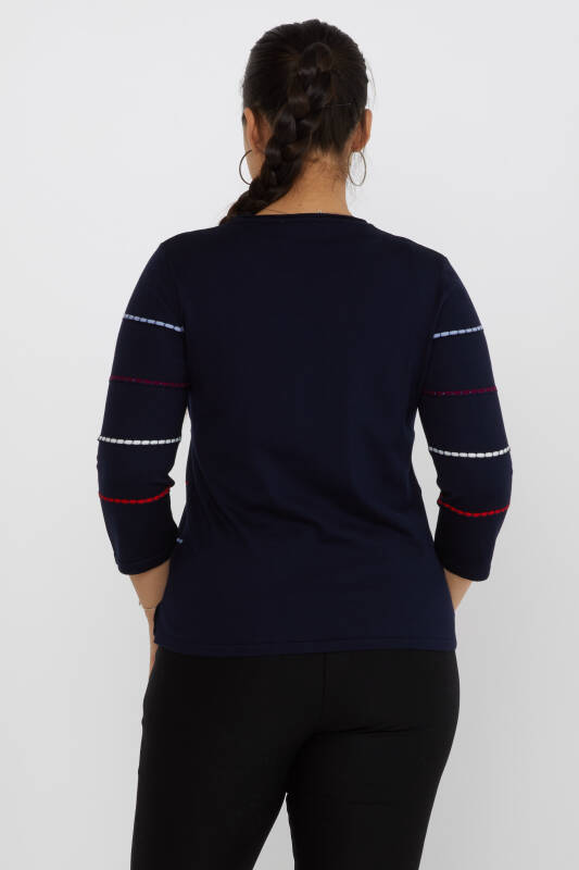Maglione in maglia a righe ricamato girocollo blu navy-blu - 31392 | KAZEE (Set di 3 M-L-XL)